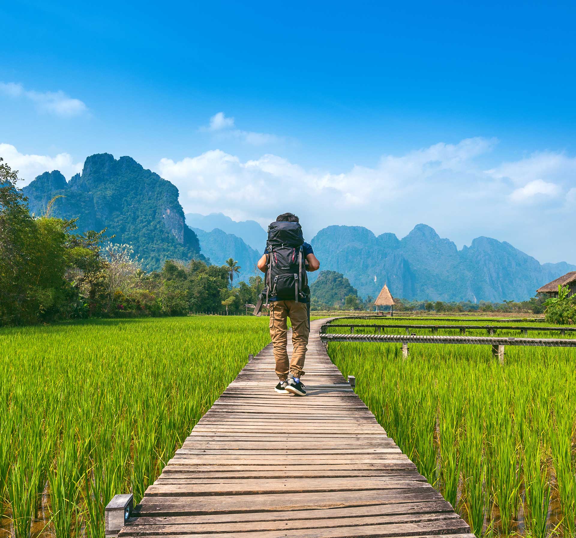 Still not much more than three streets and a bus station, the main attractions are the river, laid back countryside and cave-filled rock formations. Vang Vieng is embedded in rainforests and rice fields and thanks to its fascinating backdrop with picturesque karst mountains a tourist magnet. There are also some beautiful, blue lagoons that make for stunning photos. Vang Vieng is truly an outdoor paradise with plenty of outdoor activities available in the most beautiful of surroundings, such as kayaking, caving, rock climbing, and so many more.