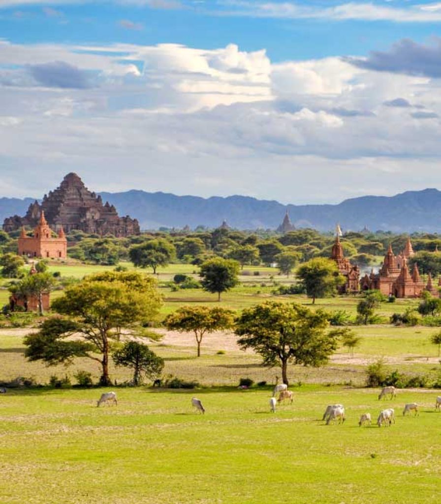 Located on the banks of the Ayeyarwady (Irrawaddy) River, Bagan is home to the largest and densest concentration of Buddhist temples, pagodas, stupas and ruins in the world with many dating from the 11th and 12th centuries. The city with its collection of over 2000 awe-inspiring pagodas, is surely the most splendid sight in the whole of Southeast Asia and a must for any visitor to Myanmar. Nowhere else in the region do manmade relics mix so evocatively with nature as on the plains of Bagan. Visitors can enjoy a horse-and-cart ride around the site. On nearby Mount Popa, one can enjoy trekking, horseback riding trips and spectacular views.