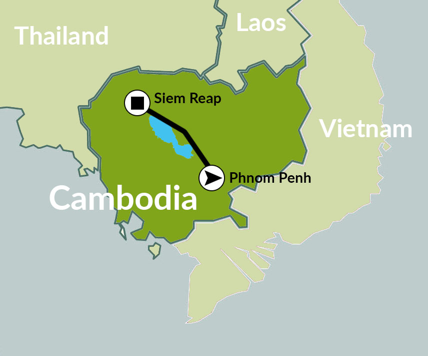 Explore Phnom Penh with Cyclo (Bicycle Rickshaw), a chaotic, energetic and always fascinating city. Start our tour at Wat Phnom, the birthplace of the capital. Then, visit to the Royal Palace, the residence of King Norodom Sihamoni, the Silver Pagoda, and the National Museum, which contains a comprehensive collection of Khmer art. Then, visit of Phnom Penh’s great markets, the Central Market, a labyrinth of stalls selling everything from CDs and DVDs to silks, crafts, jewelry and more. In the afternoon by private vehicle, visit Sleng Museum, formerly a High School which became the interrogation and torture facility for the Khmer Rouge regime.